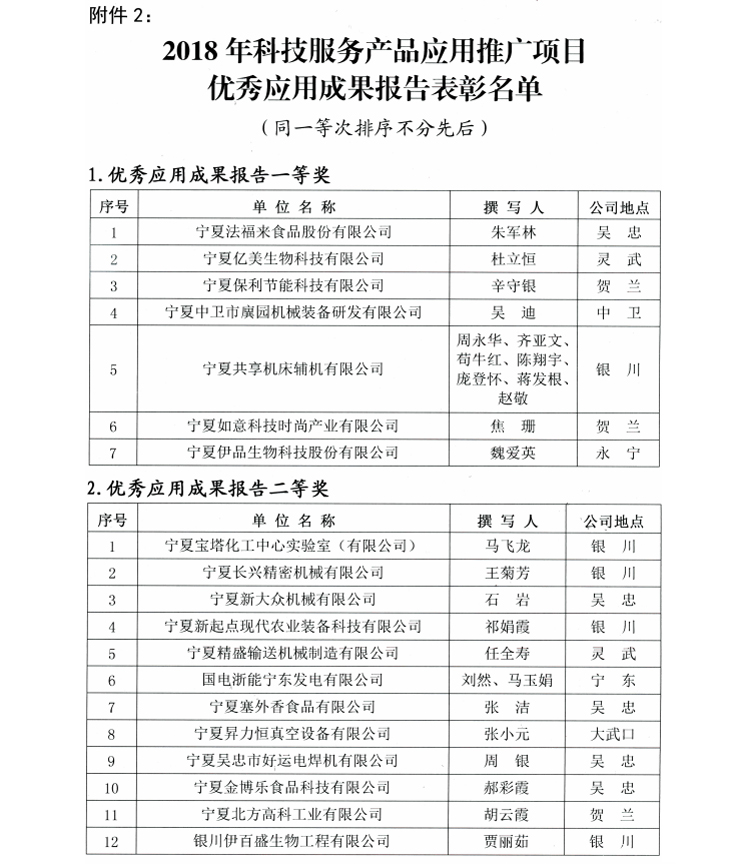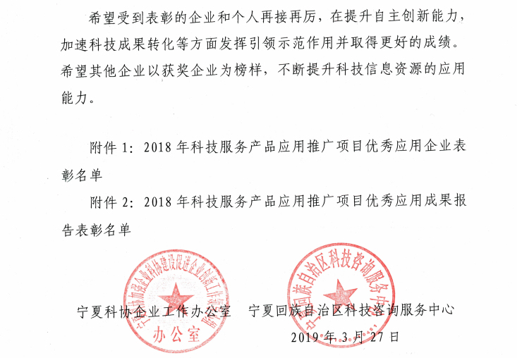 关于表彰2018年科技服务产品应用推广项目优秀应用企业及优秀应用成果报告的通知